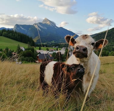 Venez découvrir le mode de vie de nos vaches Galloways et Charolaises, élevées au milieu des montagnes.